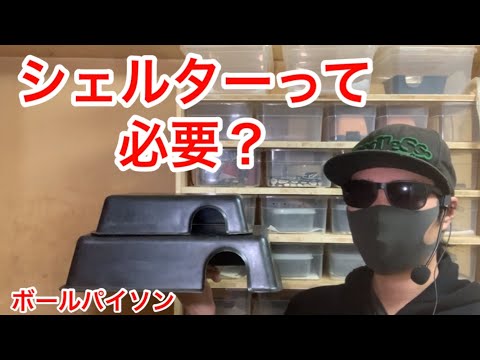 ボールパイソン飼育にシェルターを置く場合と置かない場合があります。